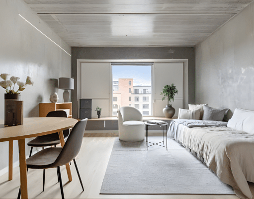 Nogle studios er udstyret med faste seng- og opbevaringsløsninger, mens andre udlejes uden møbler. Derudover findes der lejligheder med ét eller to separate soveværelser, som egner sig godt til bofællesskab.